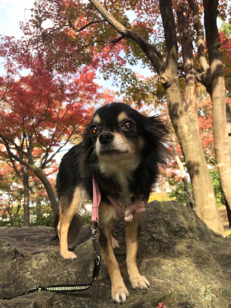 紅葉が綺麗で眼の中にも紅葉が写ってます