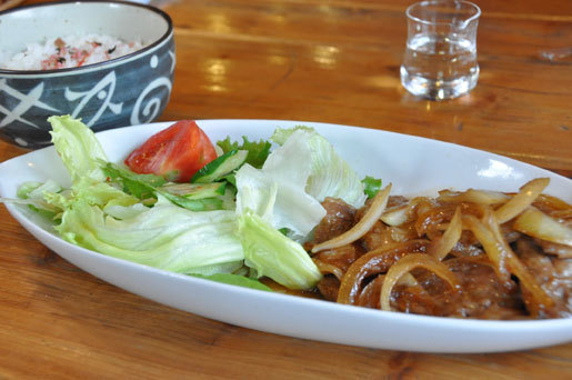 大きいワンちゃんでも店内で一緒に食事が出来ます。店内は思ってたより席数が多いからか狭く感じました。常連さんがとても多い印象です。ペットを飼っていない一般のお客さんが看板犬や他のワンちゃん目当てのお客様がいました。食事は家庭料理という感じで美味しかったです。写真は豚の生姜焼き定食です。私達が行った時にミニドッグランは年季が入っていましたが、ボール遊びが出来るほど十分の広さでしたが、リニューアルしたとの事できになっています。また是非行ってみたいです。