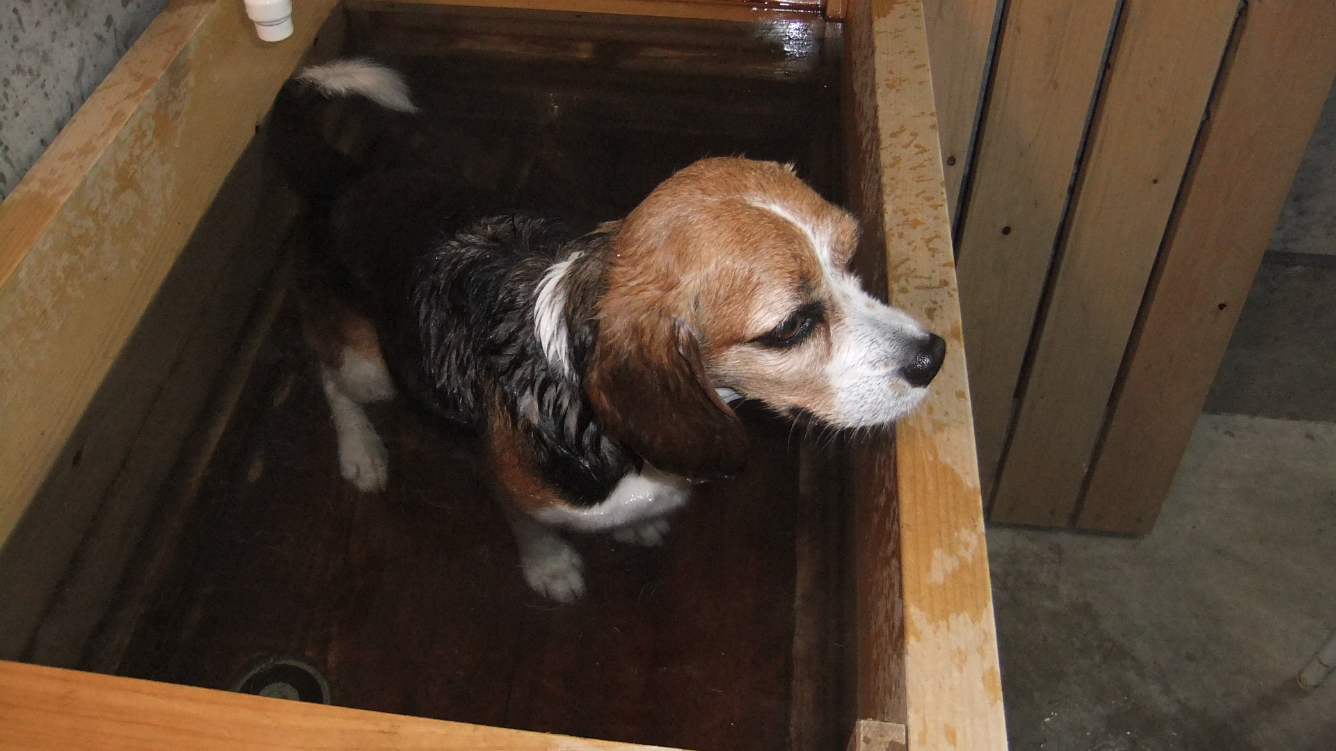 いつも那須のホテルに宿泊しているのですが、丁度予約が取れなくて検索したところこちらの宿がヒットしたのでお世話になってきました。宿はメイン道路から急な坂を下った所にあり、通り過ぎてしまったため引き返したのですが、細い急な坂は「え?マジでこの坂降りるのかな?」と不安を覚えたのですが坂の上からは宿の看板が見えたので恐る恐る(笑)下り宿に到着。かなり年代を感じる造りの宿で内心「失敗したかな」と思ったのですが、中に入ると宿の方の対応もとても良く、部屋食だし温泉もとても気持ちが良かったです。また一番気に入ったのがわんこ用の温泉があること。シャンプー台と浴槽、トリミングの台が揃っていて凄く使いやすく温泉大好きなうちの愛犬には極楽でした♪温泉が大好きなのでずっと出ないし・・・。愛犬も気持ち良かったんでしょうね。お散歩コースも川沿いから山の方に行く道があり、車の往来に気を遣うこともなく散歩することもできました。